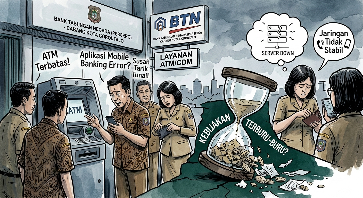 Selain itu, mengutip pemberitaan gorontaloseru.com sebagian ASN juga menyoroti kendala pada aplikasi mobile banking BTN yang dianggap belum sepenuhnya stabil bagi pengguna baru. Kondisi ini memunculkan pertanyaan mengenai kesiapan infrastruktur layanan sebelum kebijakan pemindahan RKUD diterapkan.