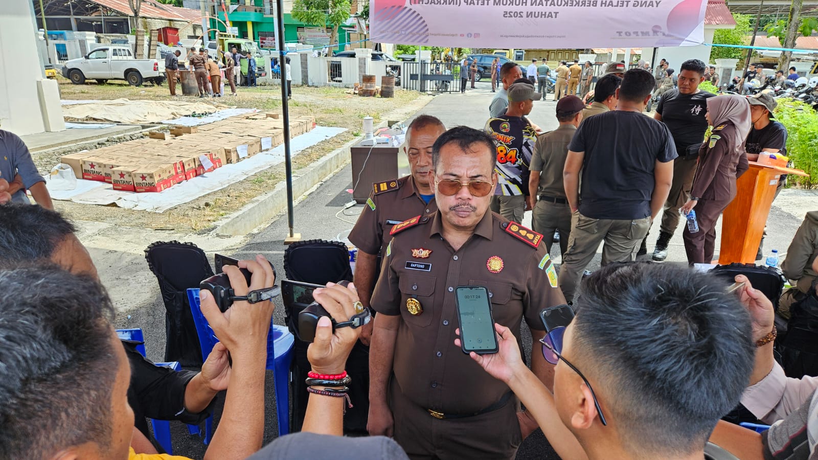 Pemusnahan barang bukti tersebut dipimpin langsung oleh Ketua Panitia Pemusnahan Barang Bukti dan Barang Rampasan Kejari Kotamobagu, serta dihadiri oleh unsur Forum Koordinasi Pimpinan Daerah (Forkopimda), di antaranya Kepala Kejaksaan Negeri Kotamobagu Sartono, S.H., Wali Kota Kotamobagu dr. Wenny Gaib, S.PM, Wakil Wali Kota Rendy Virgiawan Mangkat, S.H., M.H., Ketua Pengadilan Negeri Kotamobagu, Kapolres Kotamobagu, Dandim 1303, Ketua DPRD Kota Kotamobagu, serta jajaran Kasi Kejari Kotamobagu.