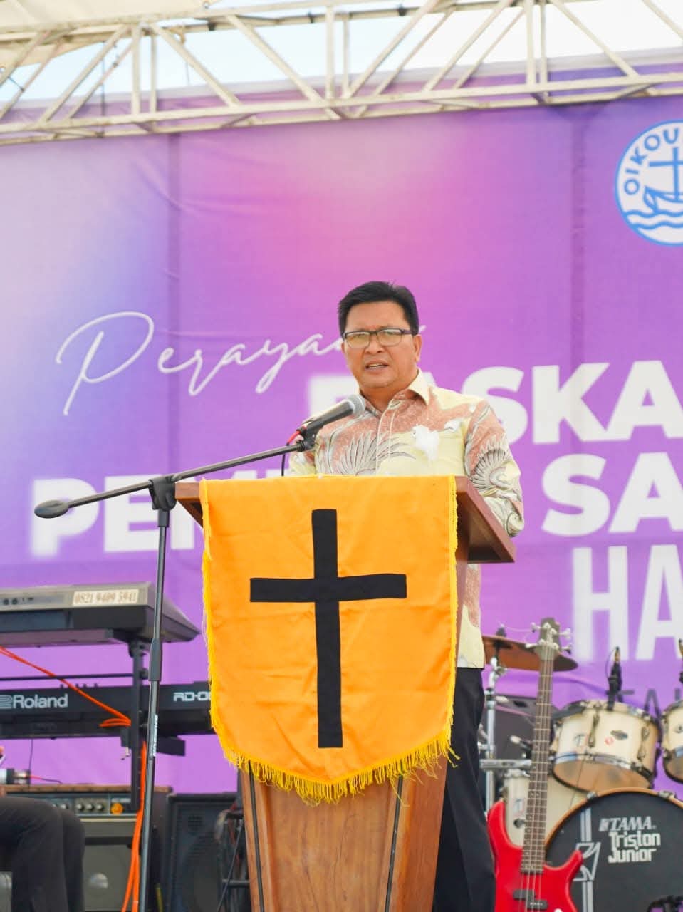 Perayaan yang mengangkat tema “Kristus Bangkit Membarui Kemanusiaan Kita (2 Korintus 5:17)” tersebut berlangsung khidmat dengan khadim Darwin Darmawan, yang juga menjabat sebagai Sekretaris Umum Persekutuan Gereja-Gereja di Indonesia.