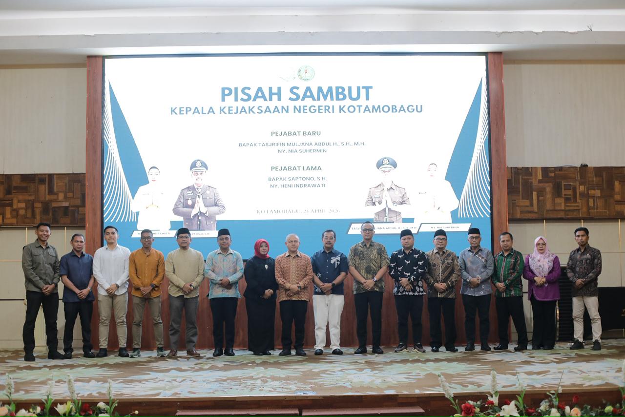 Kotamobagu, KB.news- Wali Kota Kotamobagu, dr. Weny Gaib, Sp.M., bersama Wakil Wali (Wawali) Kota Kotamobagu, Rendy Virgiawan Mangkat, S.H., M.H., menghadiri acara pisah sambut Kepala Kejaksaan Negeri (Kajari) Kotamobagu yang digelar di Ballroom Sutanraja Hotel, Jumat (24/4/2026).